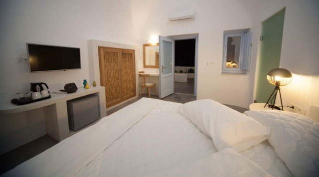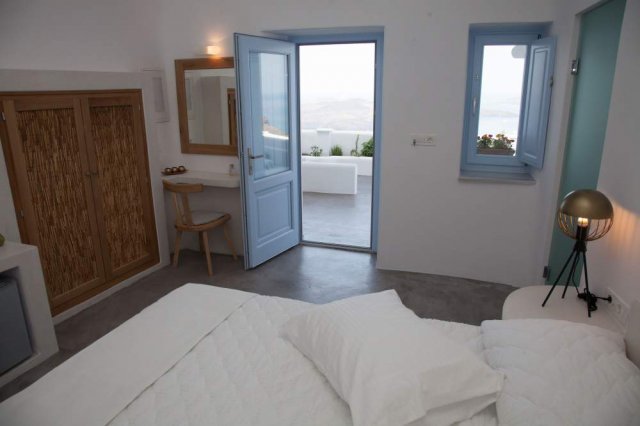 Situated in the heart of Fira town, Favari Vista Suites is luxury boutique hotel offering 4 elegantly appointed suites that provide the utmost supurb view and luxury accommodation. Each suite embraces the Cycladic tradition in an harmonic charm of white and light blue notes. Aesthetically decorated in minimal contemporary style, all suites offer a romantic and relaxing atmosphere, ideal for couples who wish to enjoy an unforgetable vacation in the most romantic island of Greece.
